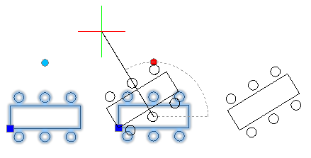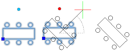 - If the Base Type is Independent and the independent base point is the lower left corner of the table. Thus, the table and the chairs rotate around the lower left corner.