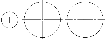 - None, As mark, As centerline: Defines the display of marks that indicate a Circle's center point and defines whether or not dashes or strokes should be added to center marks.