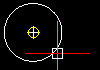 Requires that a start point for a function has been selected. Activating the EntitySnap mode relates this point to the snapped point. For instance, to create a Line tangent to a Circle, select the end point for the tangent Line, and Tangent mode is activated. The result is a tangent Line from the end point to the chosen entity. |