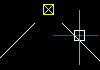 Snaps to the location in the plan view of the current coordinate system where two entities would intersect if they were projected onto the plan view. In 3D space, Visual intersection mode snaps to two entities that might or might not actually intersect, whereas, in 2D drafting, it snaps to the projected intersection of two Line entities. If the GravityBox covers only one drawing entity when snapping, you are prompted to select a second entity. |